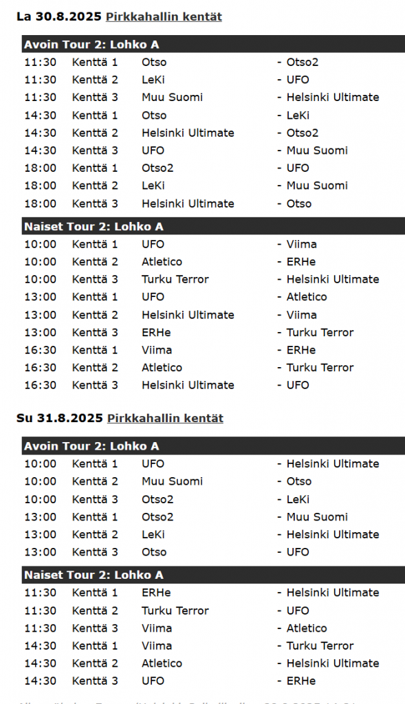 Peliaikatauluja ja tuloksia voi tarkastella Pelikoneesta.